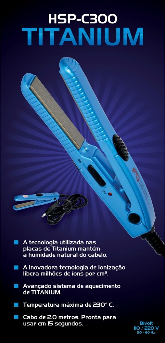 - Mini Chapa de Titanium Hsp-c300 Bivolt 15cm - 230ºc - Dimensão da Placa de Aquecimento 1,5 X 6 cm.